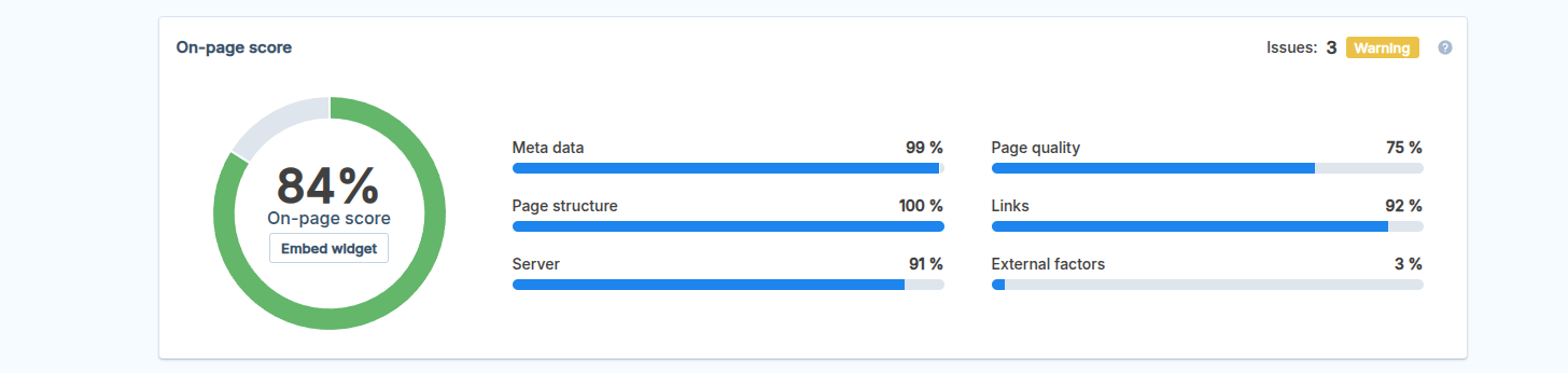 - SEO performance – How your website ranks in search results and where you could improve